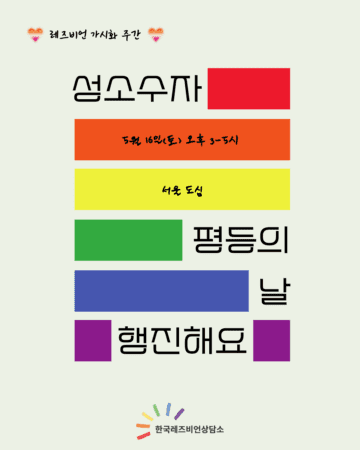 📍 문의 : lsangdam@hanmail.net(한국레즈비언상담소 사무국)