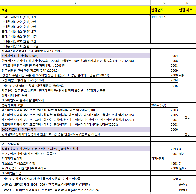 (상담소 내부 발간물 / 공동 발간물 / 외부 자료 등)