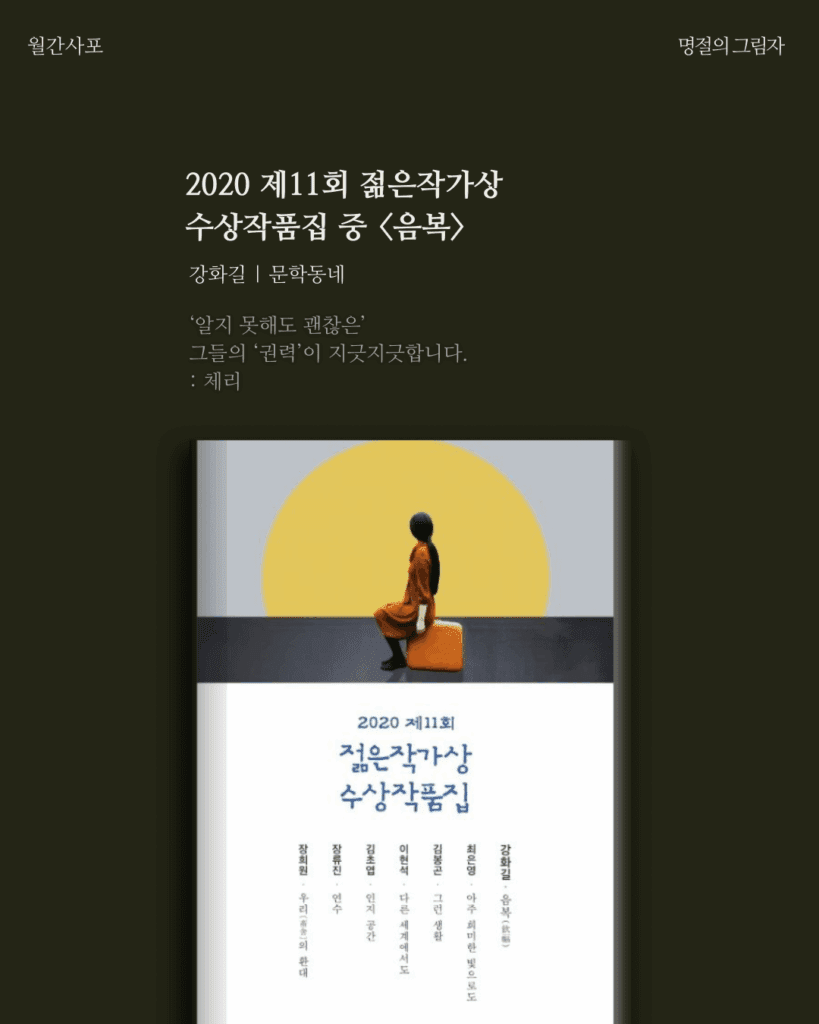 2020 제11회 젊은작가상 수상작품집 중 <음복> / 강화길