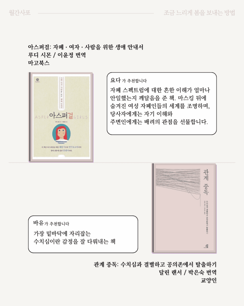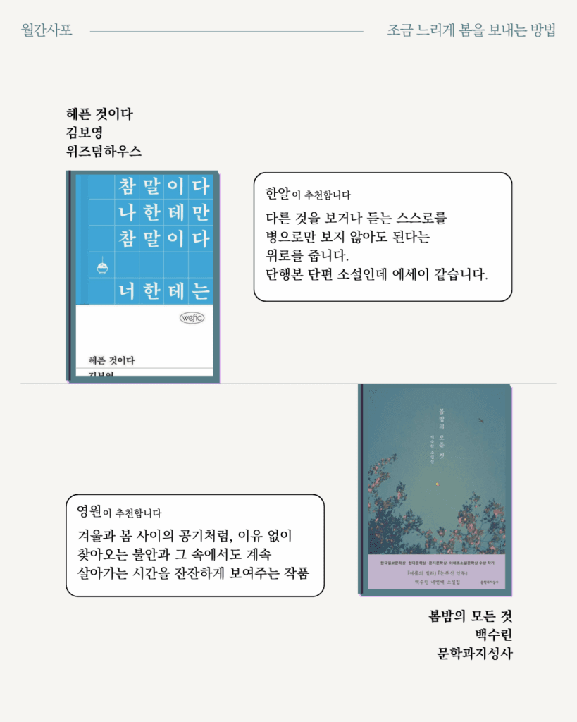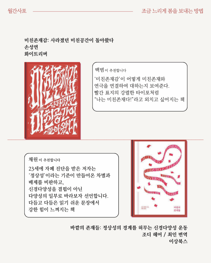 사포의서재 활동가들이 추천하는 3-4월의 책,