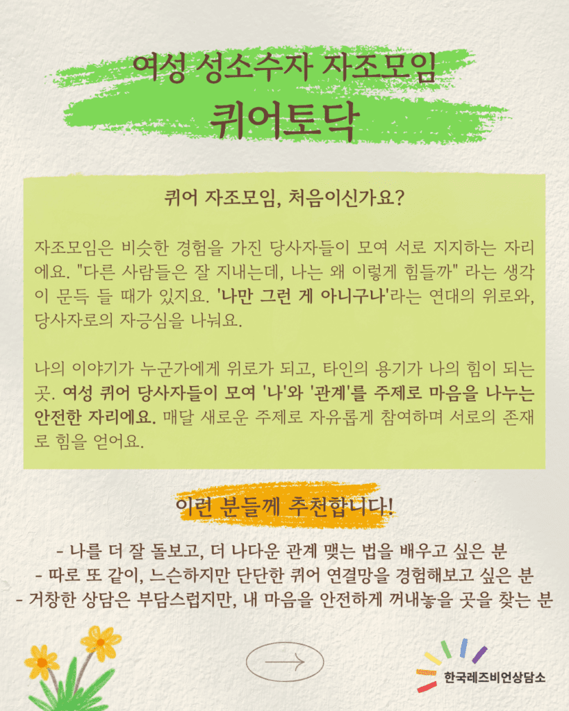 서로의 존재만으로도 충분한 공감과 지지의 연대, <퀴어토닥>에서 기다릴게요.