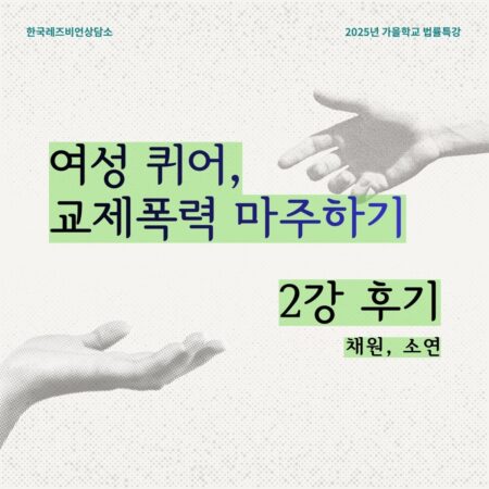지난 11월 23일과 30일, 한국레즈비언상담소에서는 ‘여성퀴어, 교제폭력 마주하기’를 주제로 특강을 진행했습니다.