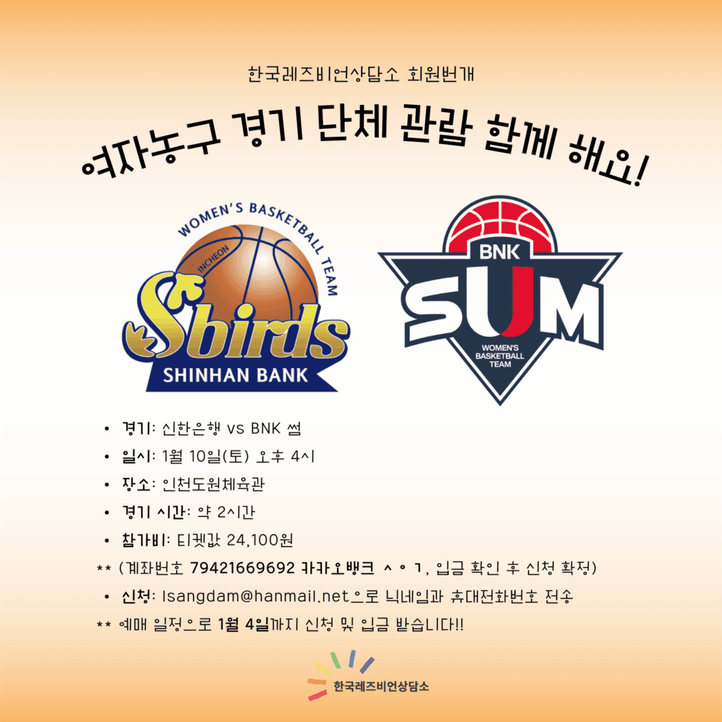 🏀 한국레즈비언상담소 농구소모임 LBA 단체관람 번개!