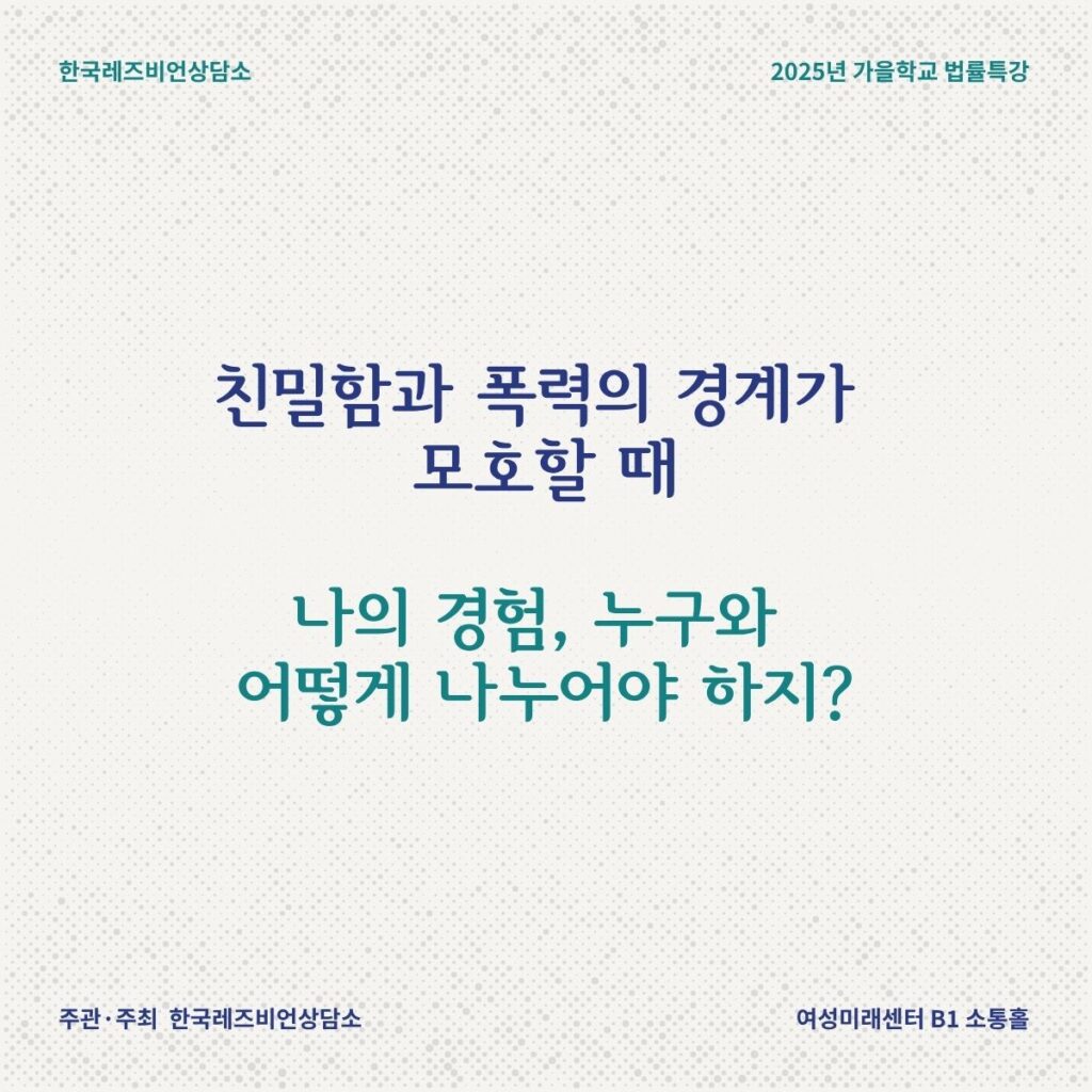 한국레즈비언상담소는 이번 2025년 가을학교 법률특강을 통해,